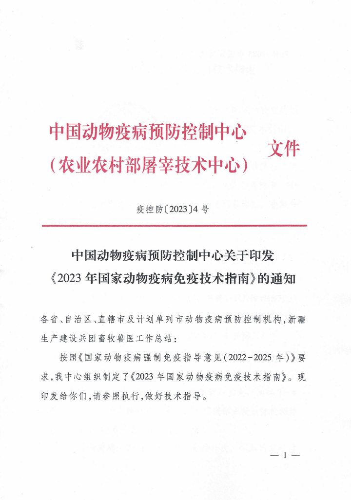中國(guó)動(dòng)物疫病預(yù)防控制中心:《2023年國(guó)家動(dòng)物疫病免疫技術(shù)指南》