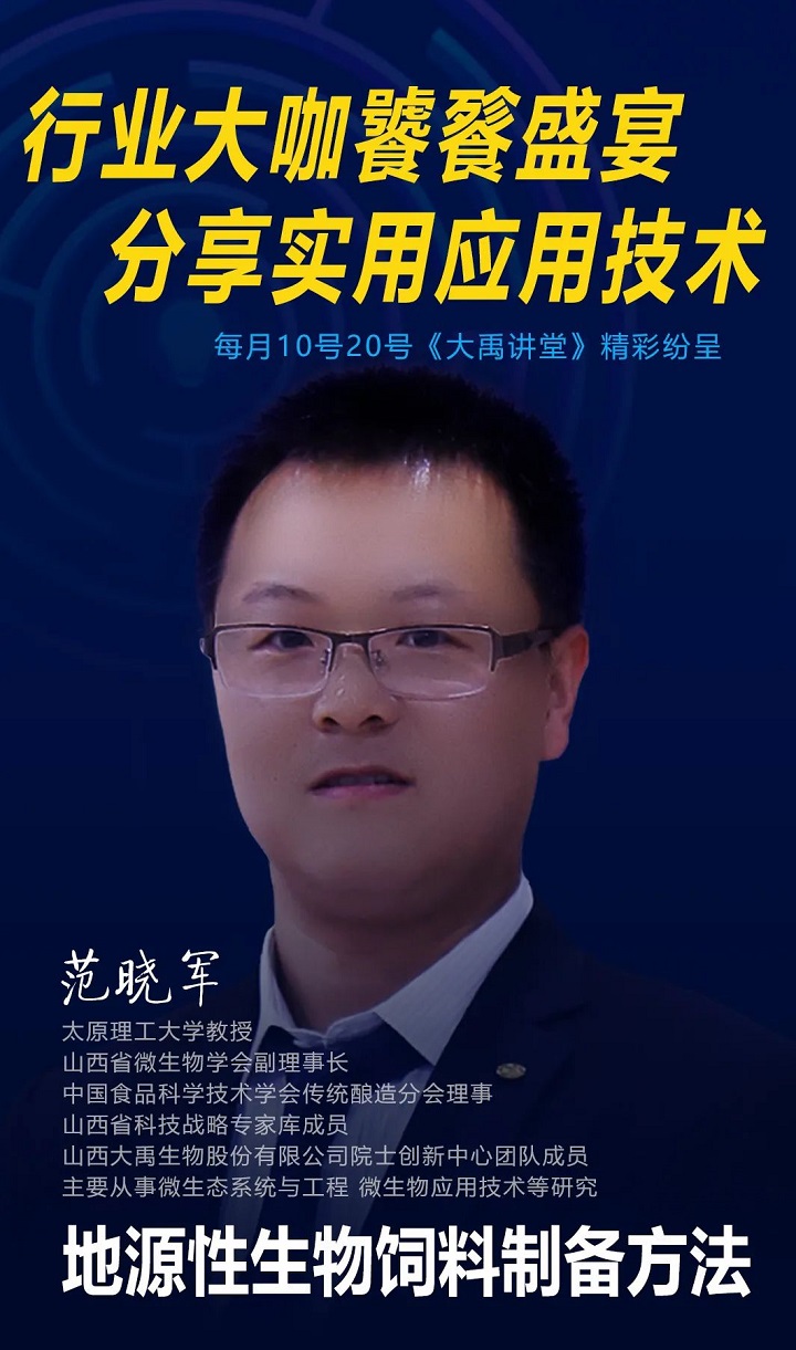 《大禹講堂》是大禹生物技術(shù)團隊內(nèi)部技術(shù)培訓、交流平臺,每月的10日、20日進行兩期。本期范曉軍老師從以下四個方面講解了地源性生物飼料制備方法: