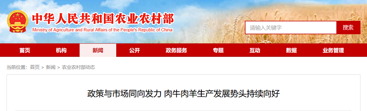 農(nóng)業(yè)農(nóng)村部:政策與市場同向發(fā)力 肉牛肉羊生產(chǎn)發(fā)展勢頭持續(xù)向好