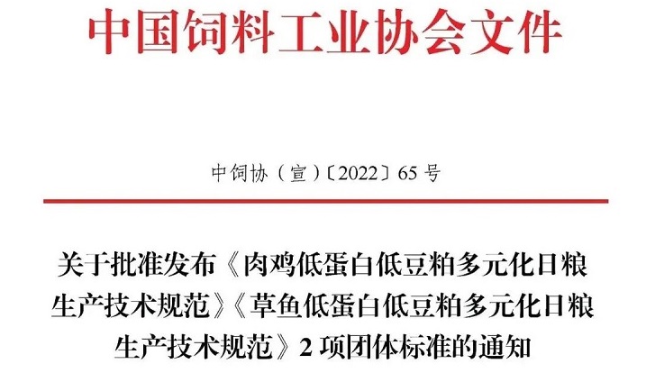飼料工業(yè)協(xié)會批準(zhǔn)發(fā)布《肉雞、草魚低蛋白低豆粕多元化日糧生產(chǎn)技術(shù)規(guī)范》兩項團(tuán)體標(biāo)準(zhǔn)